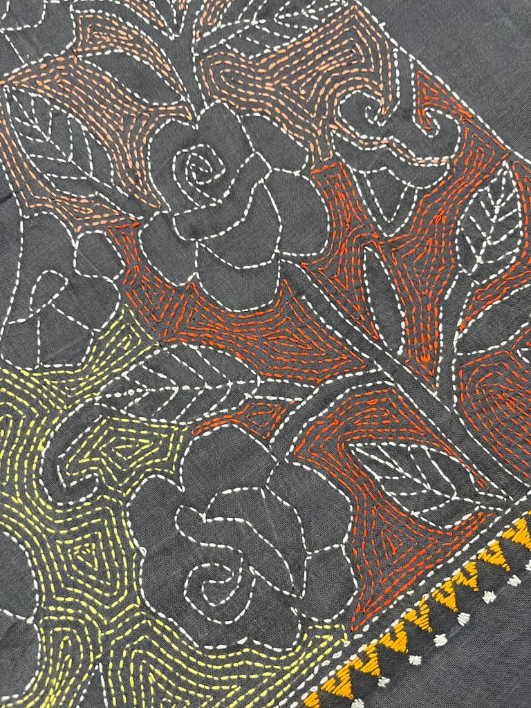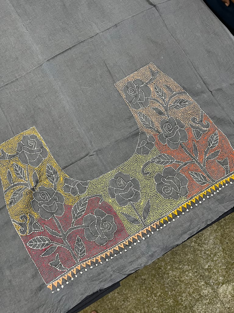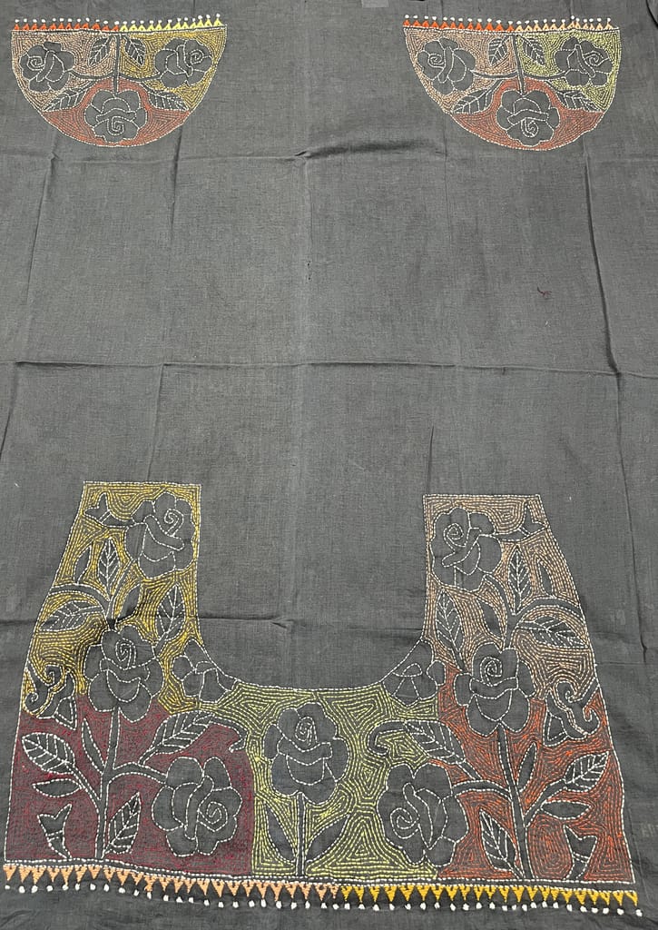 Kanthawork Blouse Piece is Intricately Handembroidered on the Back Neck area and Sleeves.