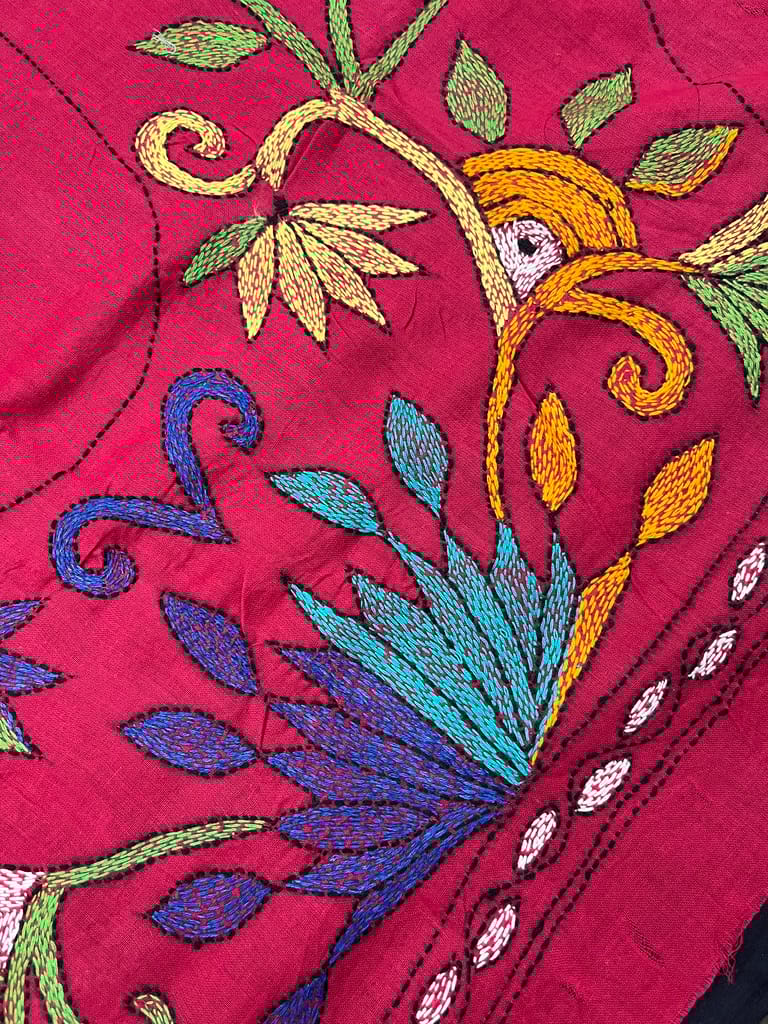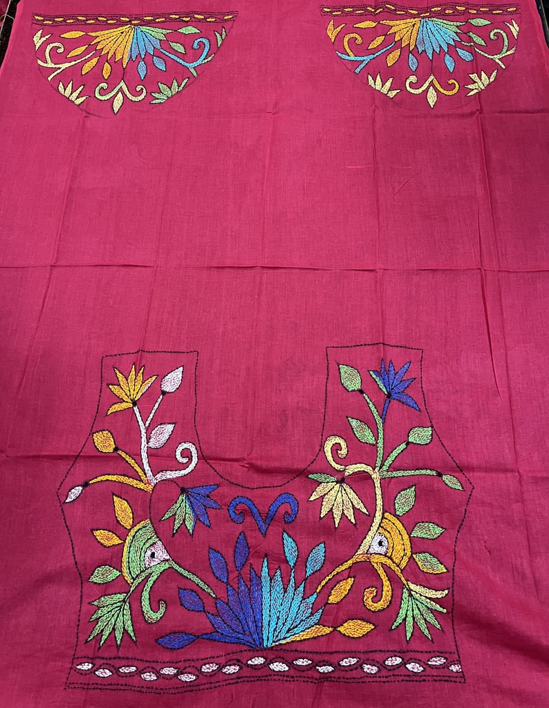 Kanthawork Blouse Piece is Intricately Handembroidered on the Back Neck area and Sleeves.