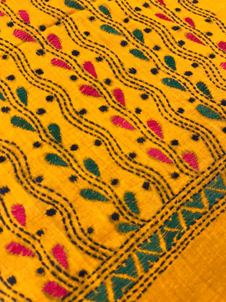 Kanthawork Blouse Piece is Intricately Handembroidered on the Back Neck area and Sleeves.