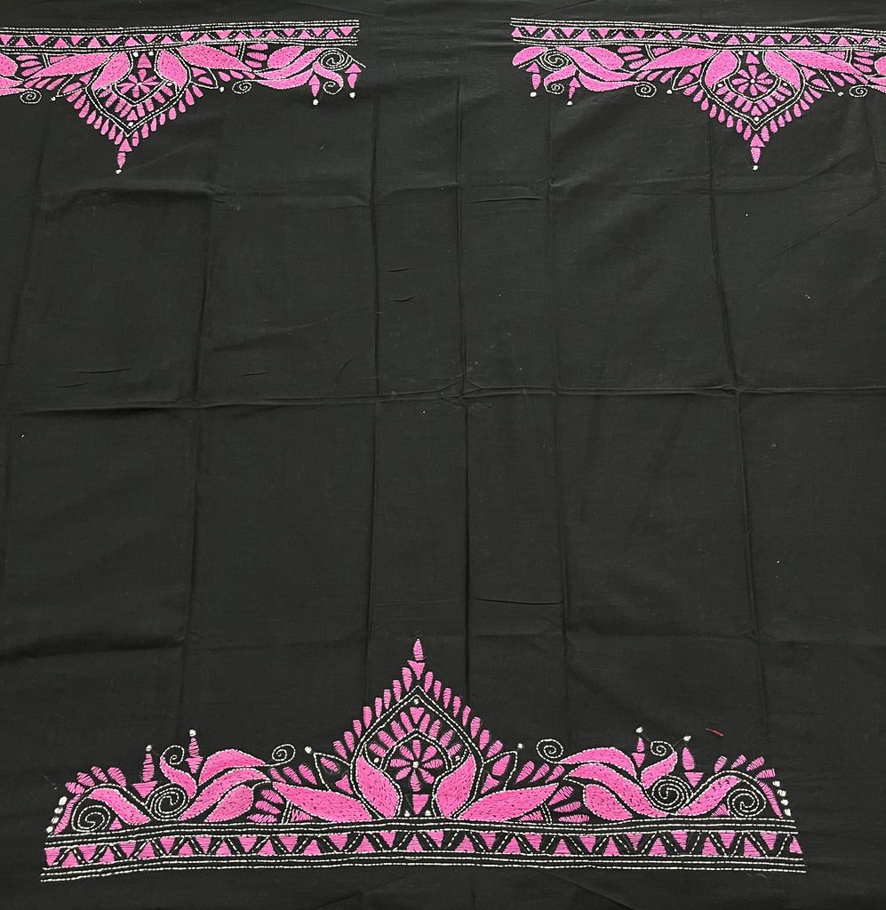Kanthawork Blouse Piece is Purely Hand-Embroidered on the Back Neck and Sleeves Portion
