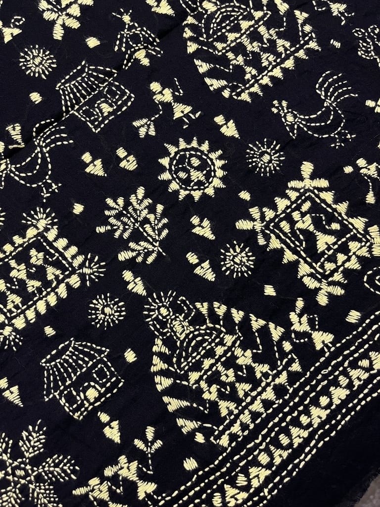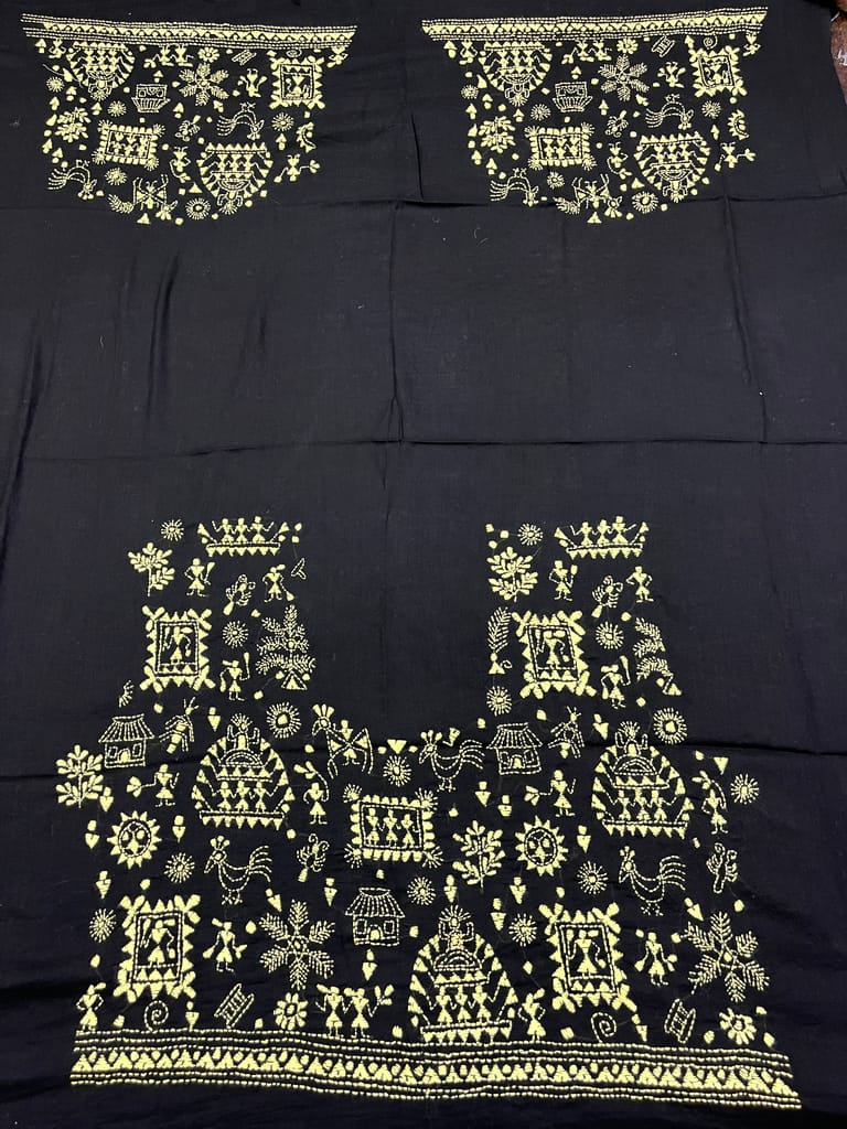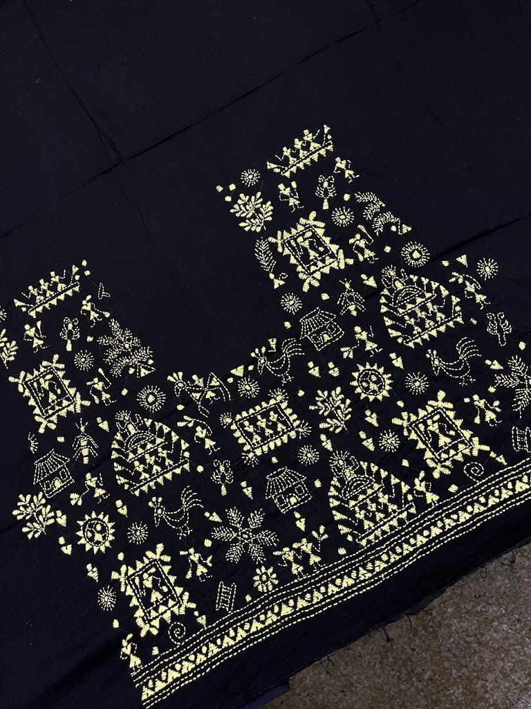 Kanthawork Blouse Piece is Intricately Handembroidered on the Back Neck area and Sleeves.