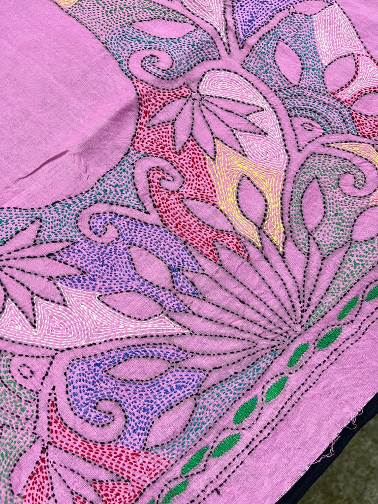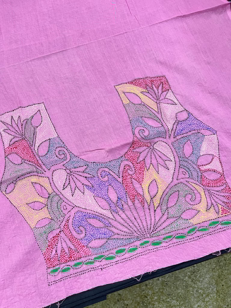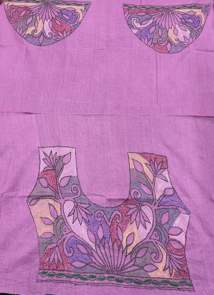 Kanthawork Blouse Piece is Intricately Handembroidered on the Back Neck area and Sleeves.