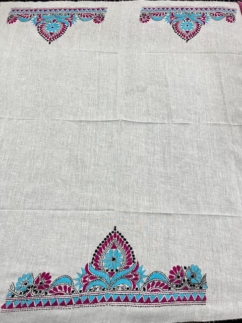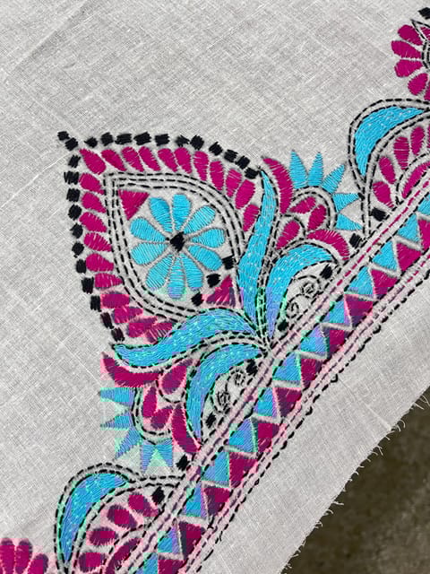 Kanthawork Blouse Piece is Purely Hand-Embroidered on the Back Neck and Sleeves Portion