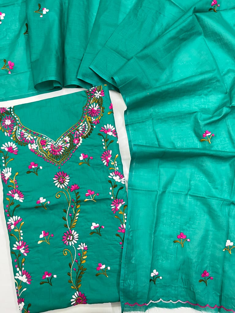 SKU-XQFNEQURCBeautifully Hand-Embroidered Kanthawork Dress Materials!