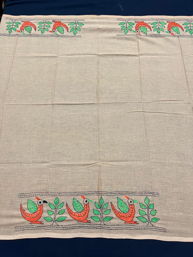 Kanthawork Blouse Piece is Purely Hand-Embroidered on the Back Neck and Sleeves Portion