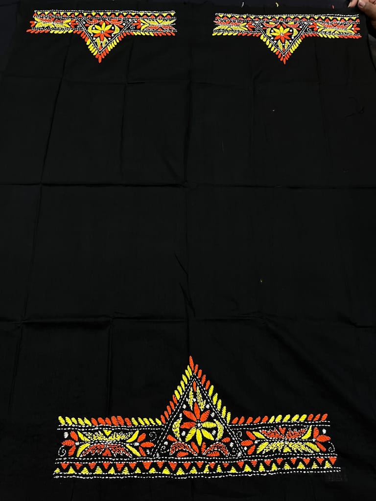 Kanthawork Blouse Piece is Purely Hand-Embroidered on the Back Neck and Sleeves Portion
