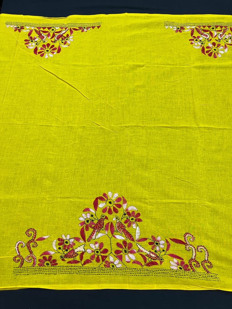 Kanthawork Blouse Piece is Purely Hand-Embroidered on the Back Neck and Sleeves Portion