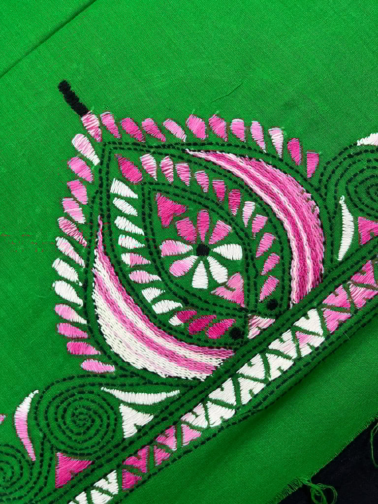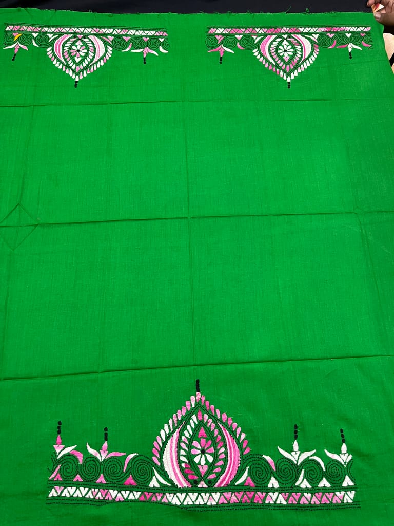 Kanthawork Blouse Piece is Purely Hand-Embroidered on the Back Neck and Sleeves Portion
