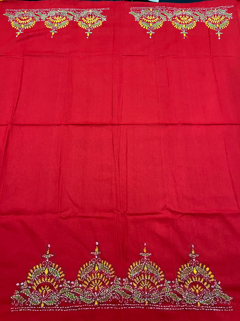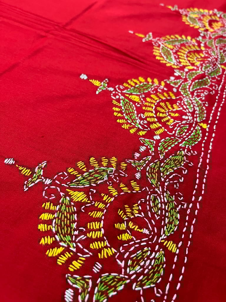 Kanthawork Blouse Piece is Purely Hand-Embroidered on the Back Neck and Sleeves Portion