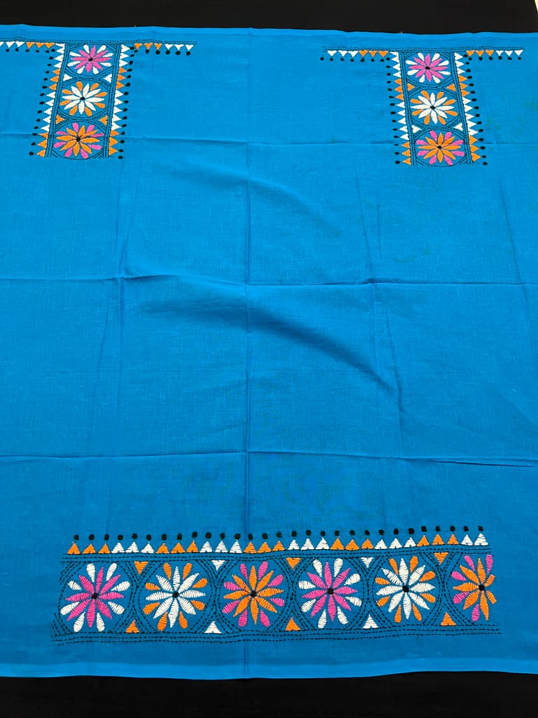 Kanthawork Blouse Piece is Purely Hand-Embroidered on the Back Neck and Sleeves Portion