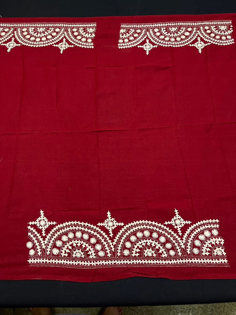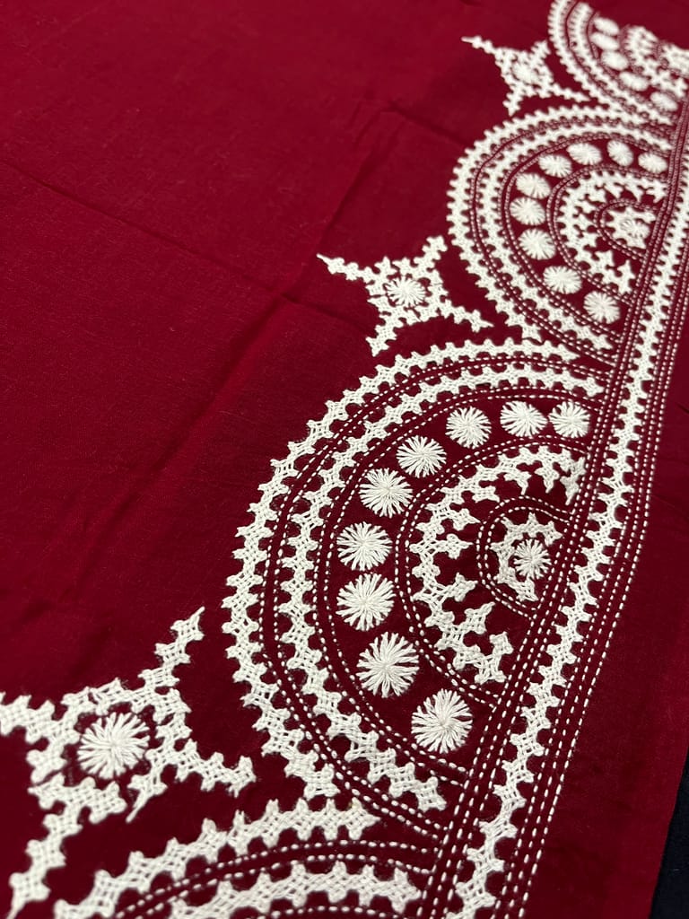 Kutchwork Blouse Piece is Purely Hand-Embroidered on the Back Neck and Sleeves Portion