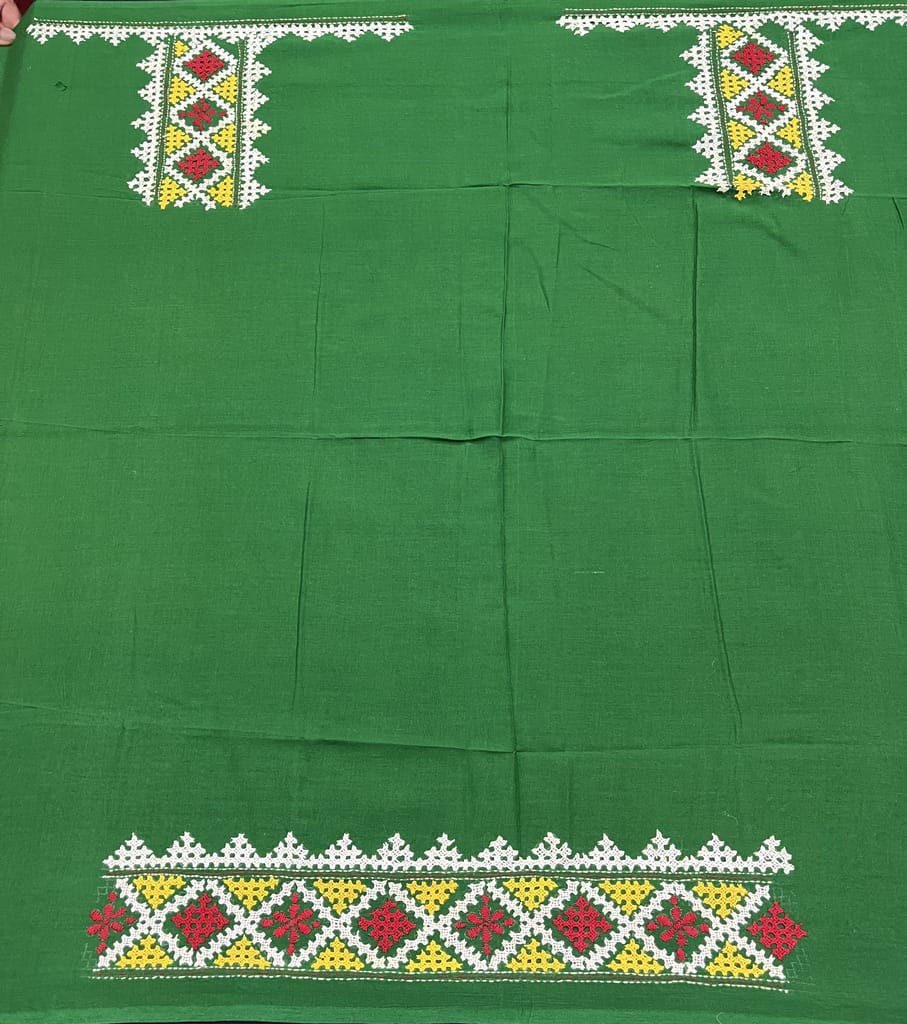 Kutchwork Blouse Piece is Purely Hand-Embroidered on the Back Neck and Sleeves Portion