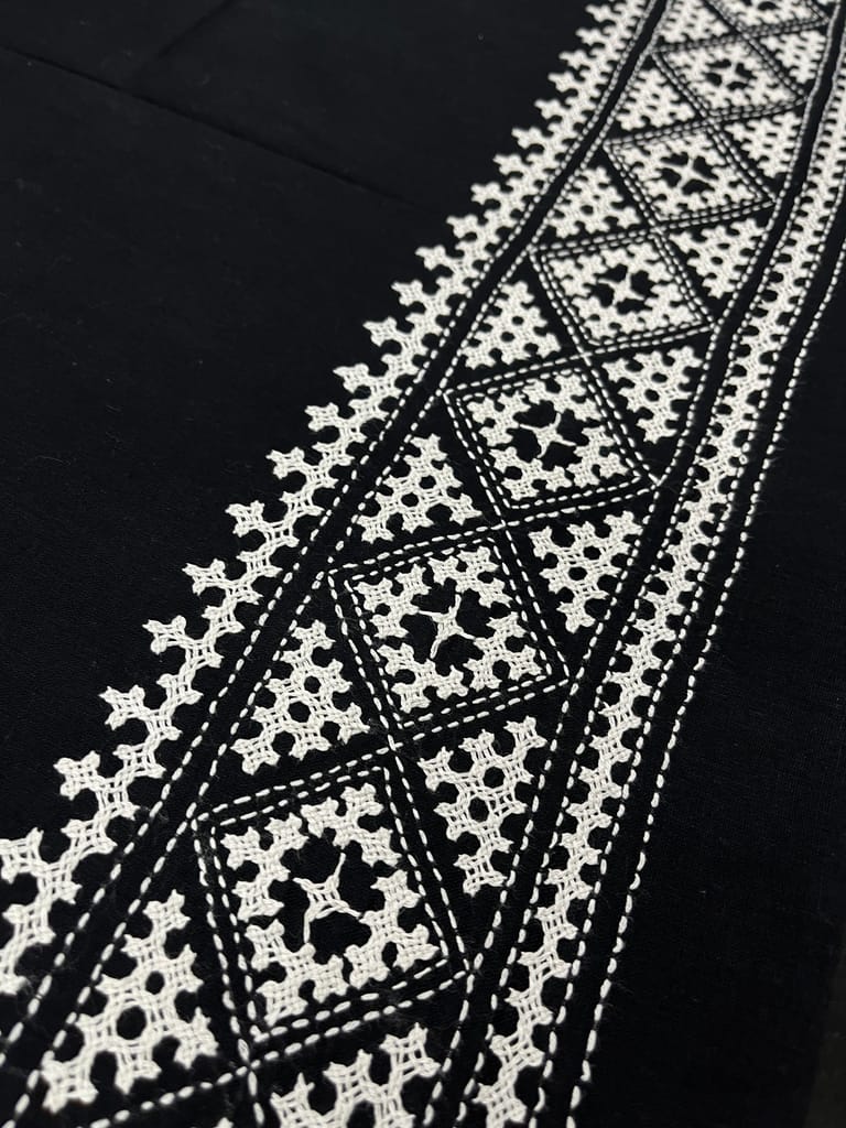 Kutchwork Blouse Piece is Purely Hand-Embroidered on the Back Neck and Sleeves Portion