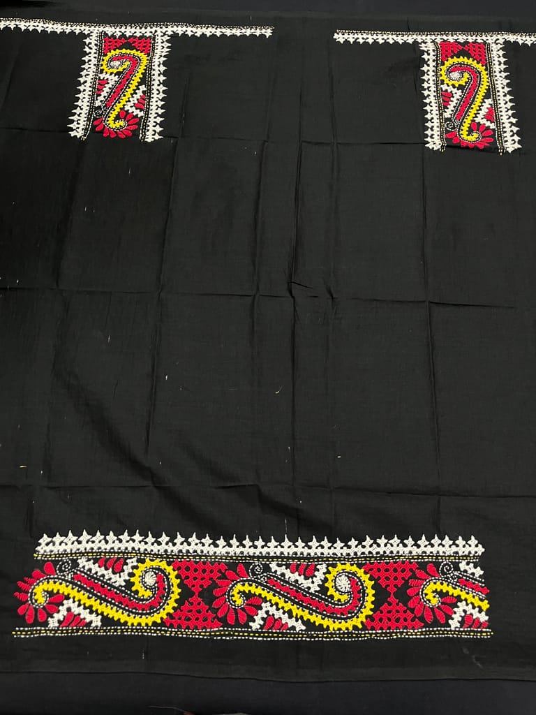 Kutchwork Blouse Piece is Purely Hand-Embroidered on the Back Neck and Sleeves Portion
