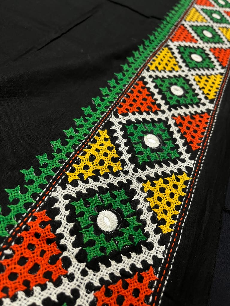 Kutchwork Blouse Piece is Purely Hand-Embroidered on the Back Neck and Sleeves Portion