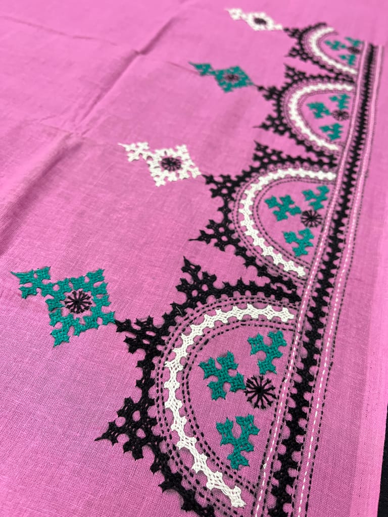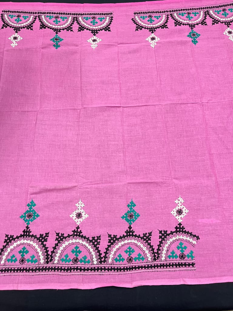 Kutchwork Blouse Piece is Purely Hand-Embroidered on the Back Neck and Sleeves Portion