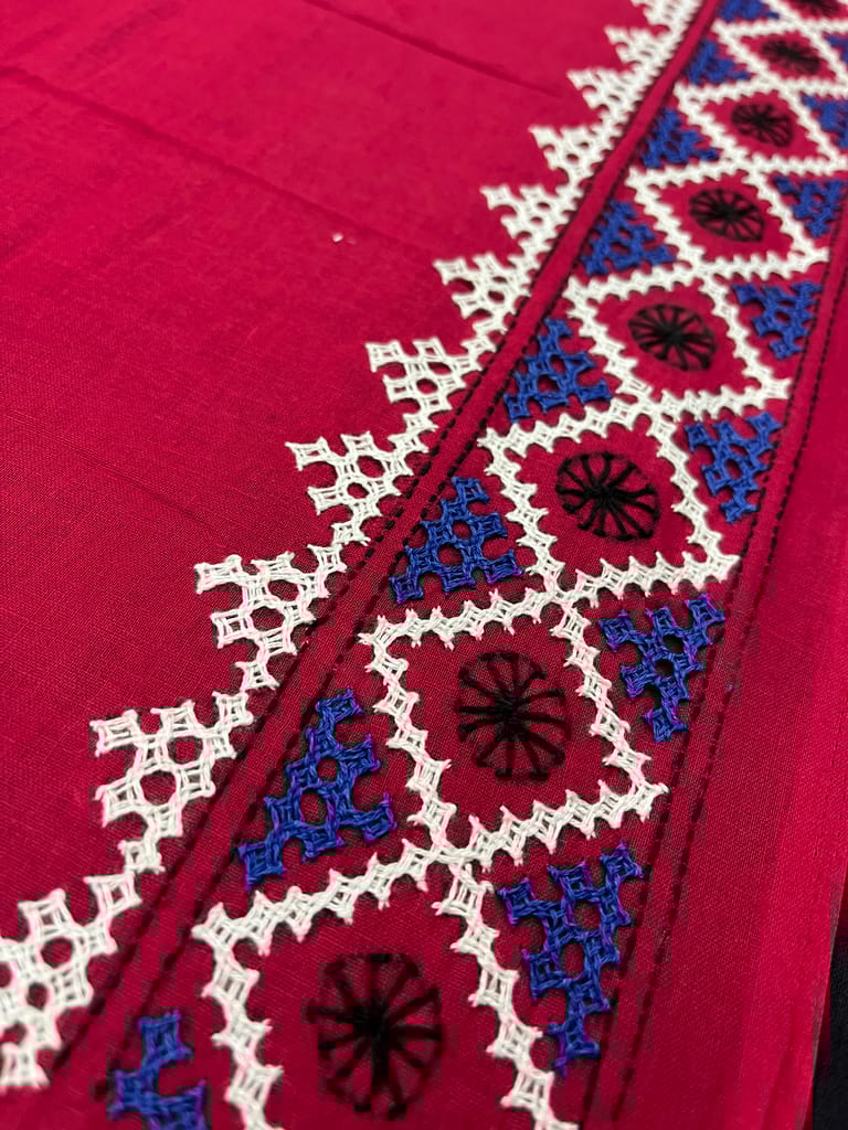 Kutchwork Blouse Piece is Purely Hand-Embroidered on the Back Neck and Sleeves Portion