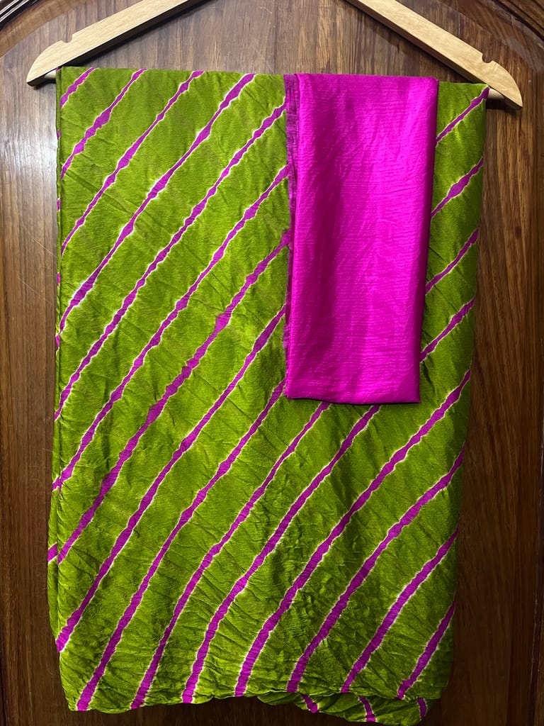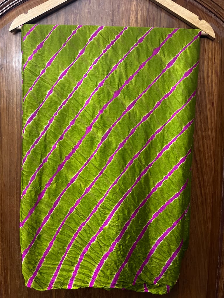 SKU-8QXY1EMZ1Lehariya is a Traditional Style of Tie & Dye Practice in India, that results in Brightly Coloured Cloth with Distinctive Patterns. Lehariya gets its name from Word Lehar which means ''Wave'' because the dyeing technique is used to produce complex Wave Designs, popularly called the Lehariya!