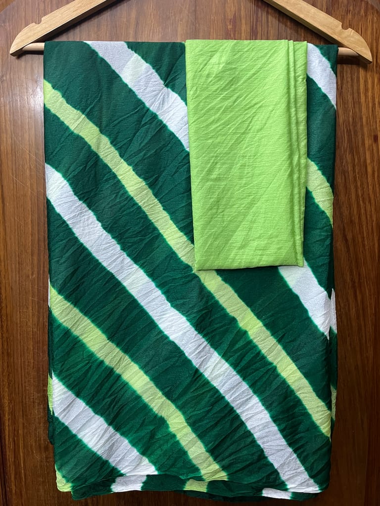SKU-OSYKVVH5ILehariya is a Traditional Style of Tie & Dye Practice in India, that results in Brightly Coloured Cloth with Distinctive Patterns. Lehariya gets its name from Word Lehar which means ''Wave'' because the dyeing technique is used to produce complex Wave Designs, popularly called the Lehariya!
