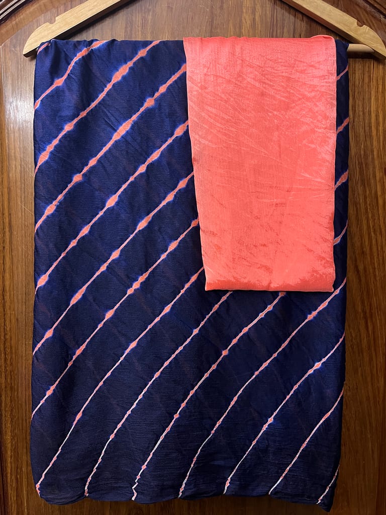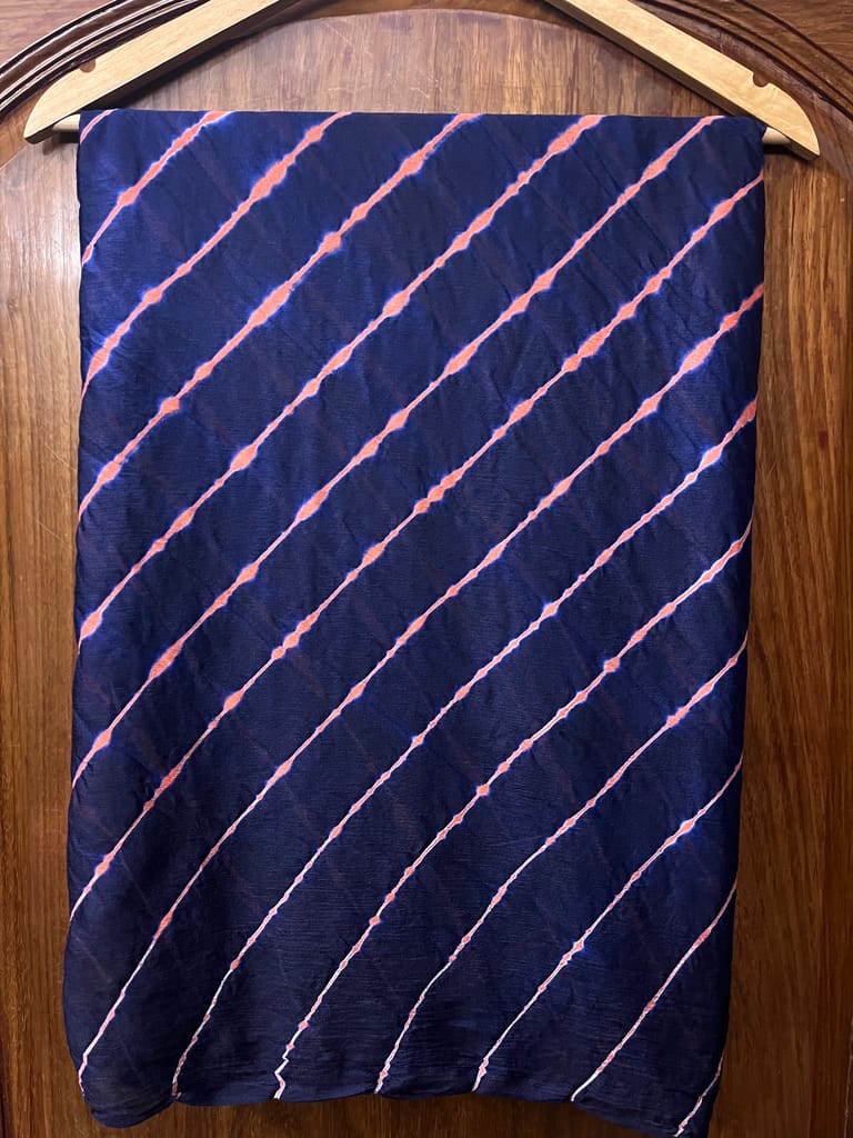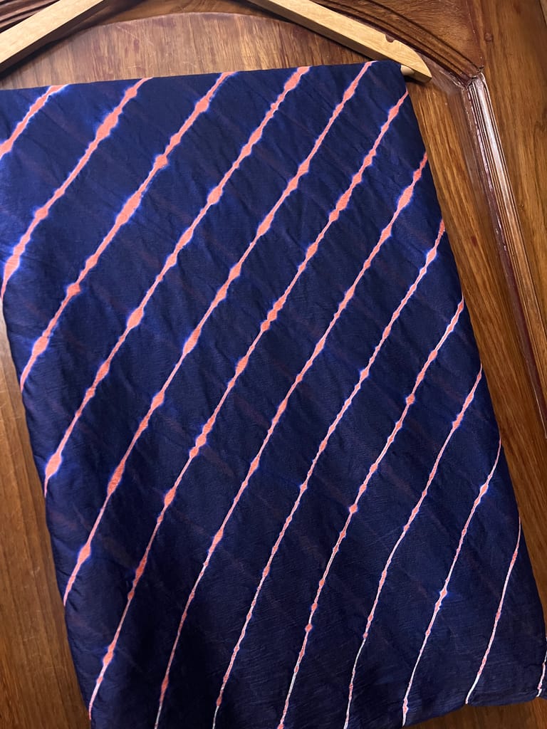 SKU-DFRYQZR0_Lehariya is a Traditional Style of Tie & Dye Practice in India, that results in Brightly Coloured Cloth with Distinctive Patterns. Lehariya gets its name from Word Lehar which means ''Wave'' because the dyeing technique is used to produce complex Wave Designs, popularly called the Lehariya!