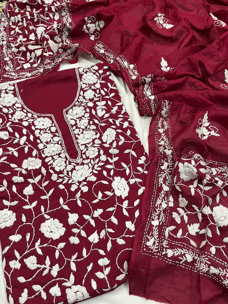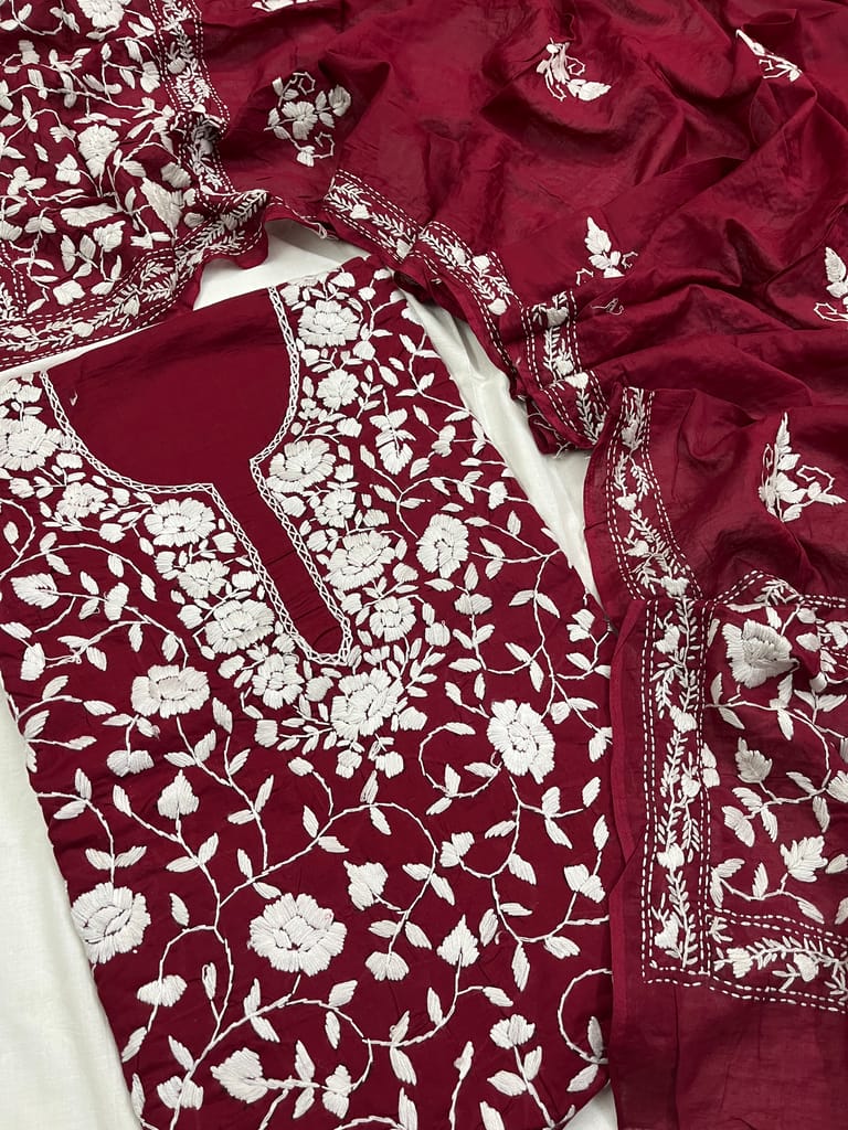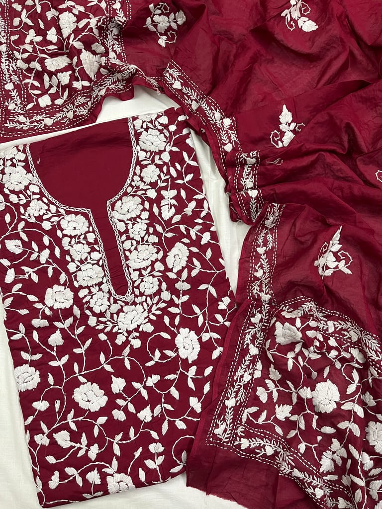 3 Piece Unstitched Dress Material with Top, Bottom and Dupatta