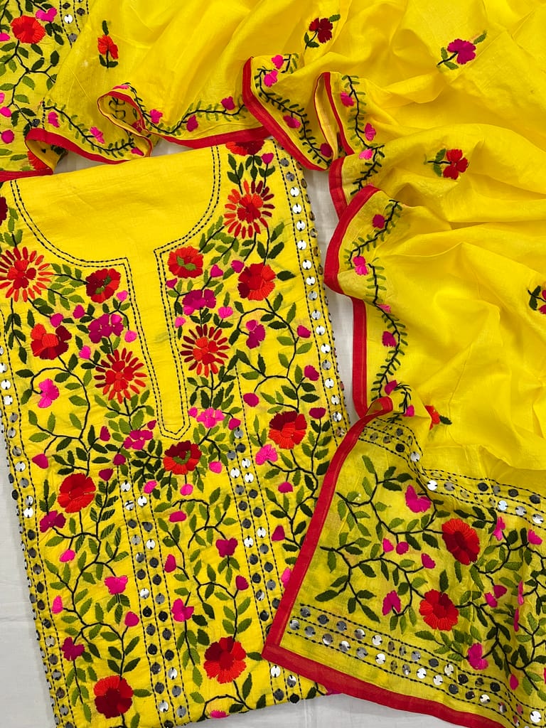 Beautifully Hand-Embroidered Phulkari Dress Materials!