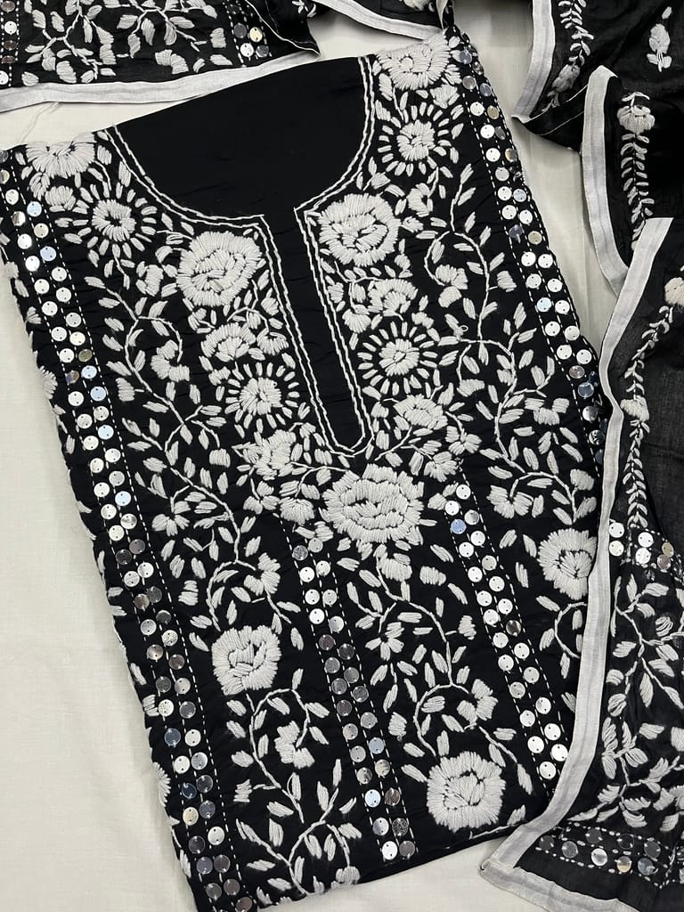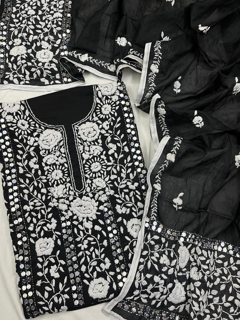3 Piece Unstitched Dress Material with Top, Bottom and Dupatta