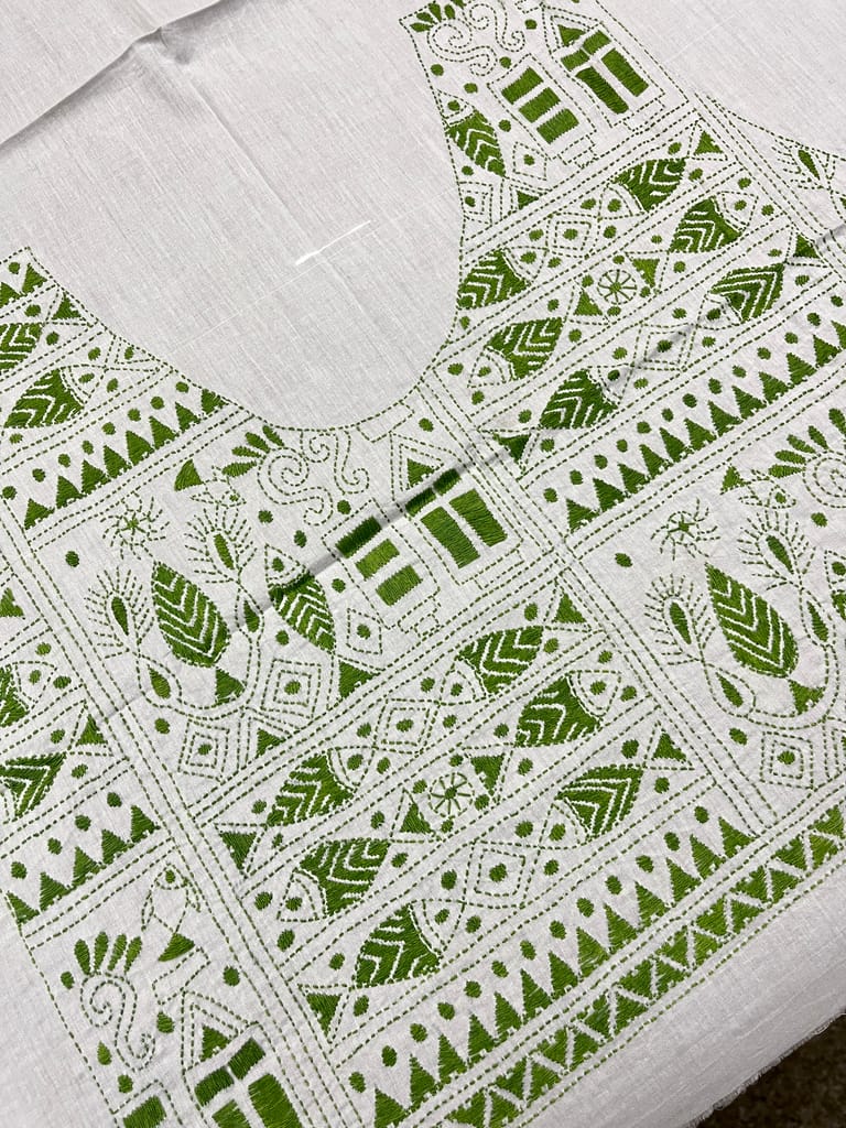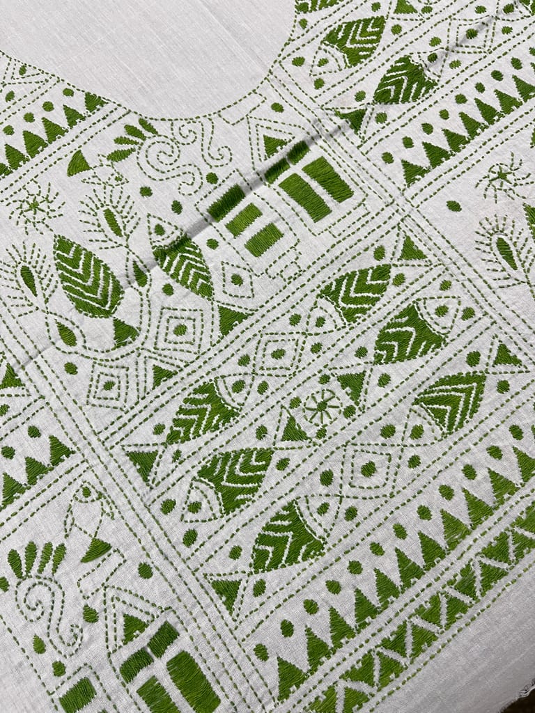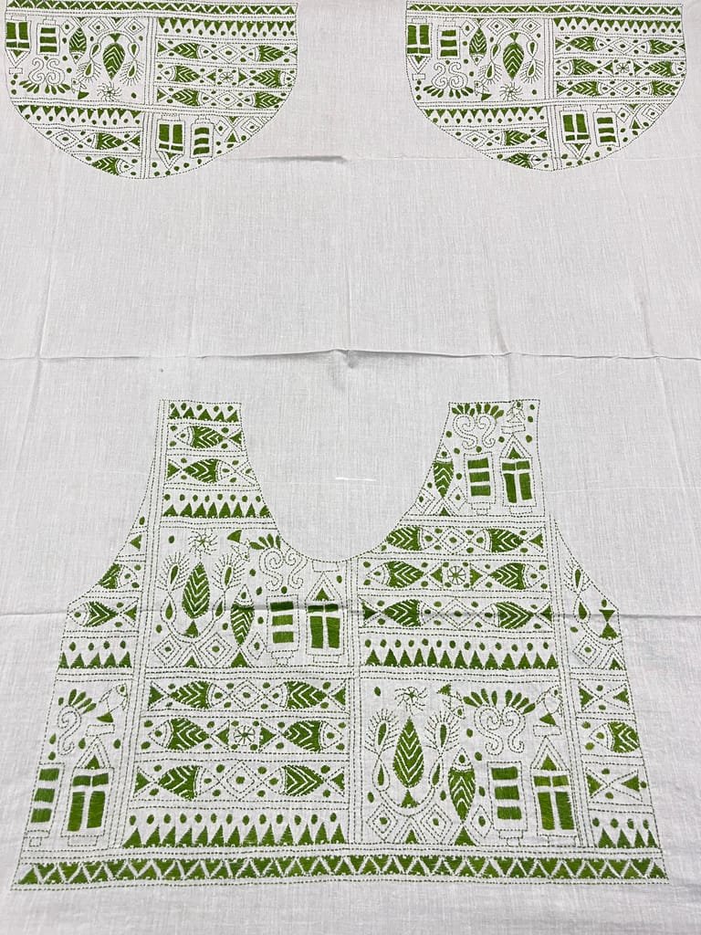 Kanthawork Blouse Piece is Purely Hand-Embroidered on the Back Neck and Sleeves Portion