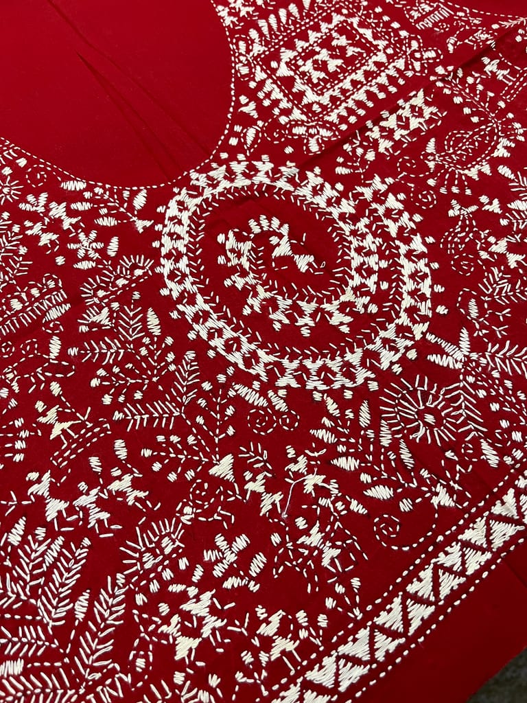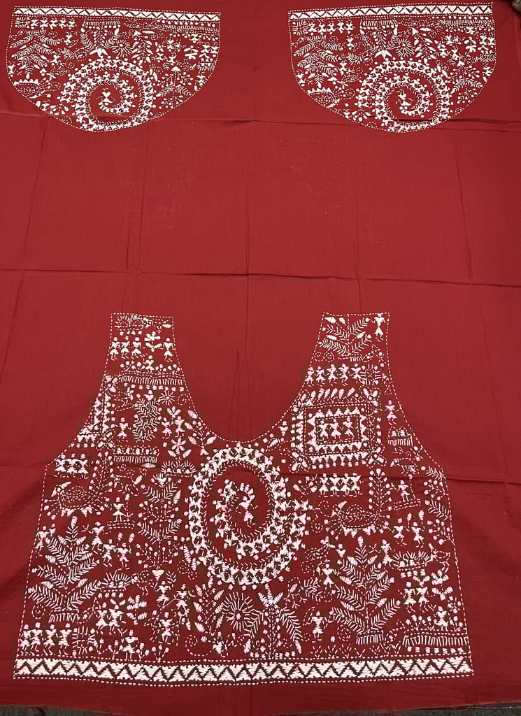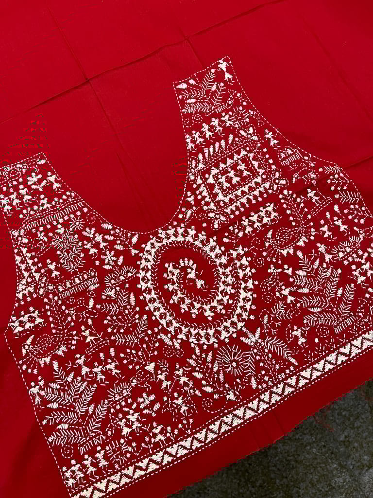 Kanthawork Blouse Piece is Purely Hand-Embroidered on the Back Neck and Sleeves Portion