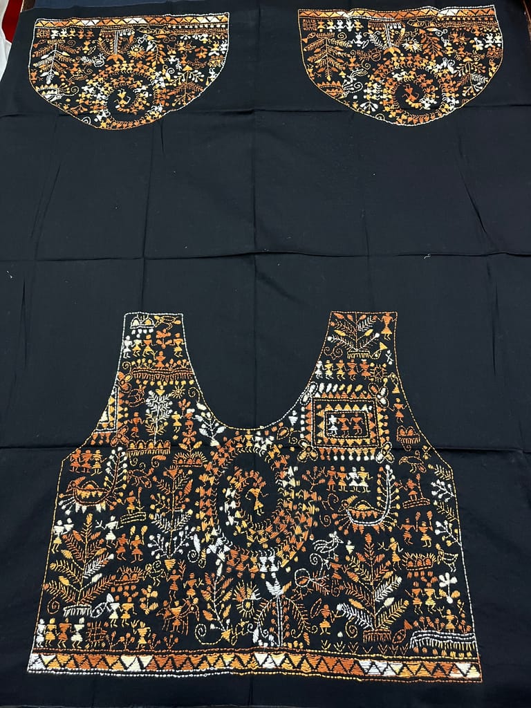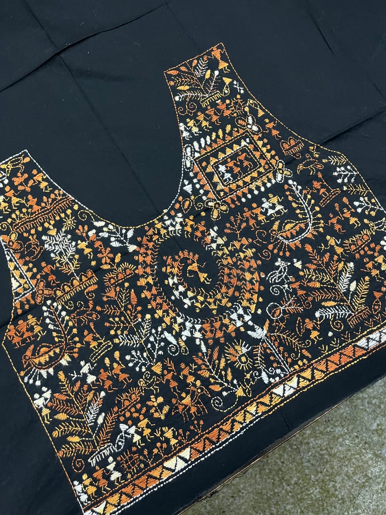 Kanthawork Blouse Piece is Purely Hand-Embroidered on the Back Neck and Sleeves Portion