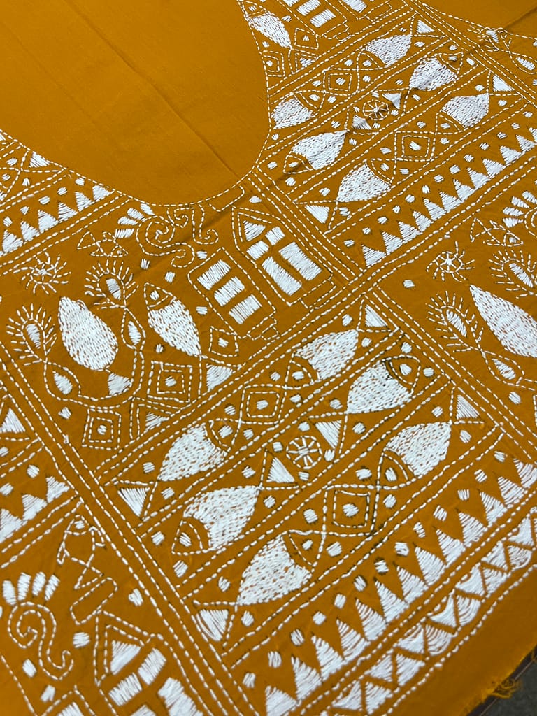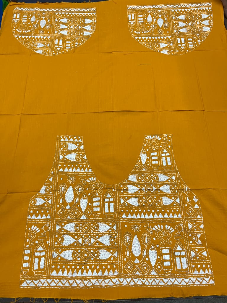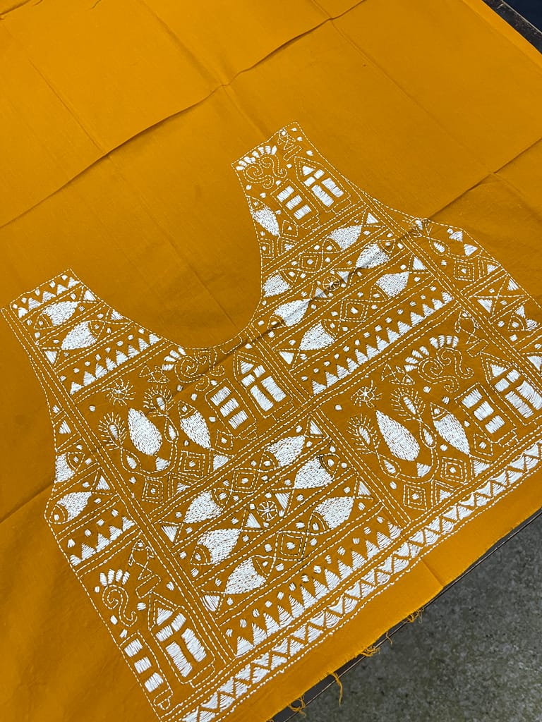 Kanthawork Blouse Piece is Purely Hand-Embroidered on the Back Neck and Sleeves Portion