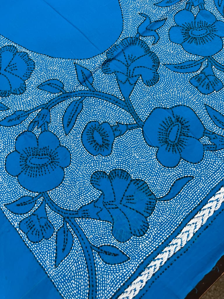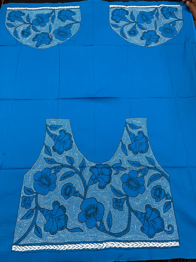 Kanthawork Blouse Piece is Purely Hand-Embroidered on the Back Neck and Sleeves Portion