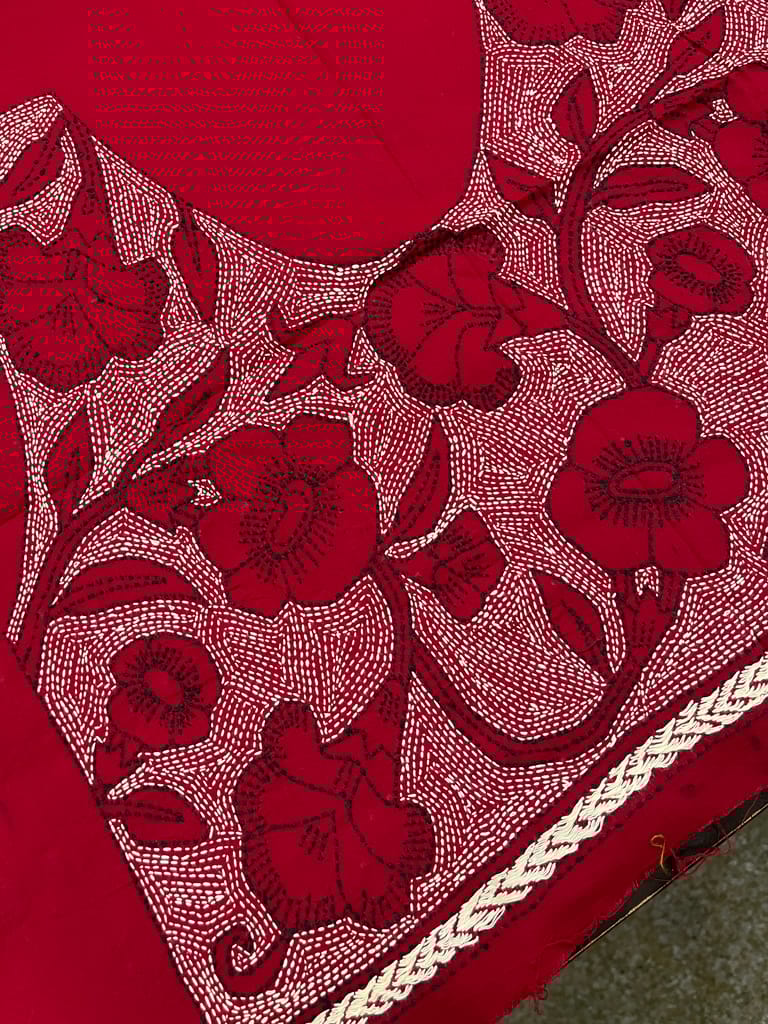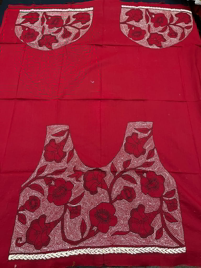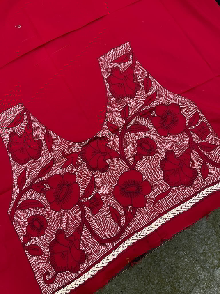 Kanthawork Blouse Piece is Purely Hand-Embroidered on the Back Neck and Sleeves Portion