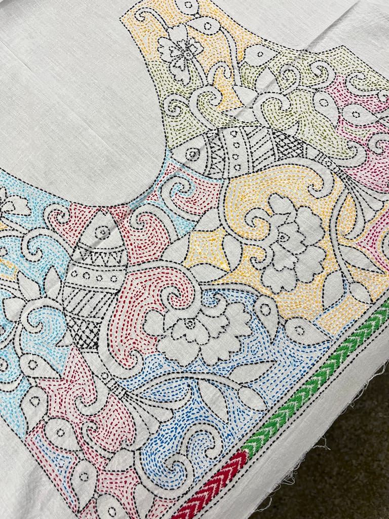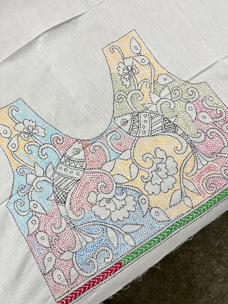 Kanthawork Blouse Piece is Purely Hand-Embroidered on the Back Neck and Sleeves Portion