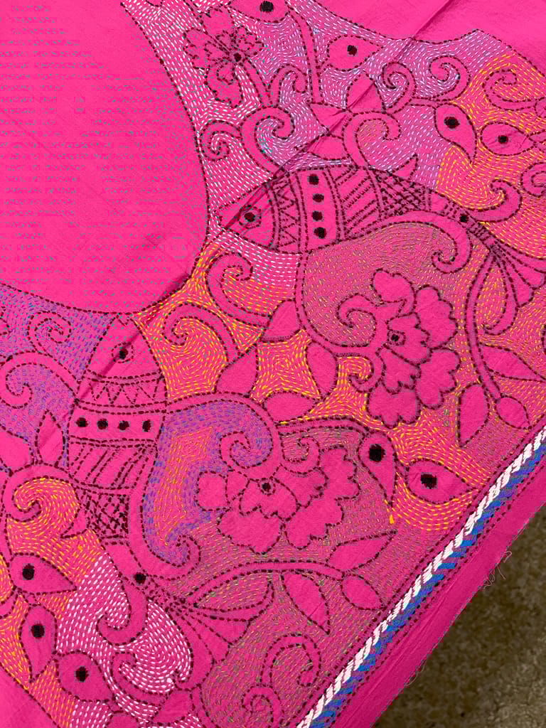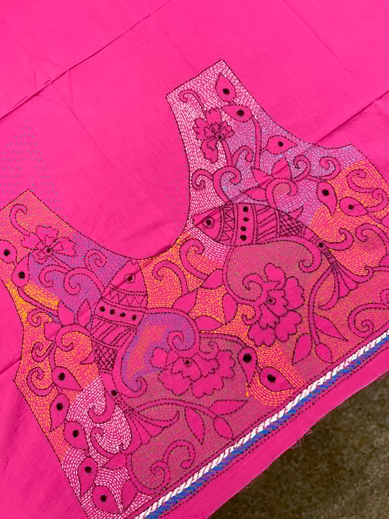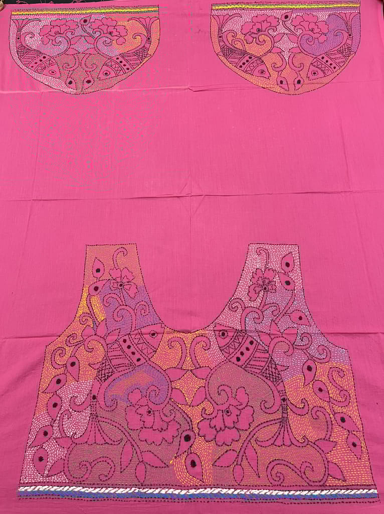 Kanthawork Blouse Piece is Purely Hand-Embroidered on the Back Neck and Sleeves Portion