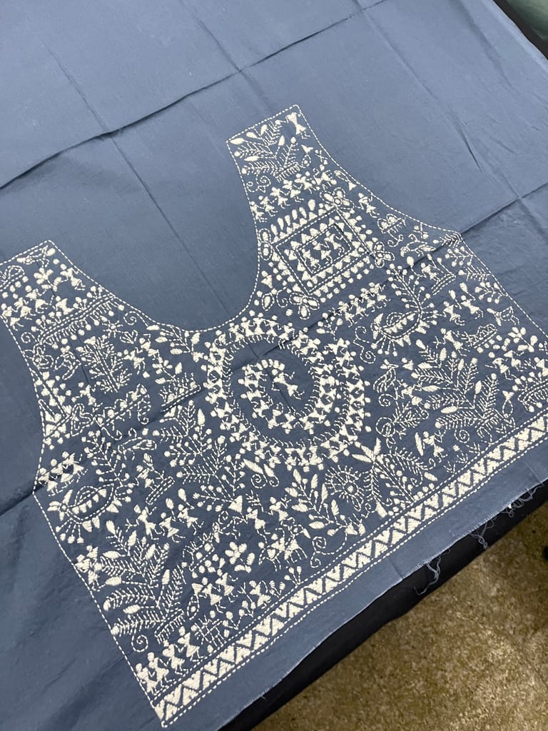 Kanthawork Blouse Piece is Purely Hand-Embroidered on the Back Neck and Sleeves Portion