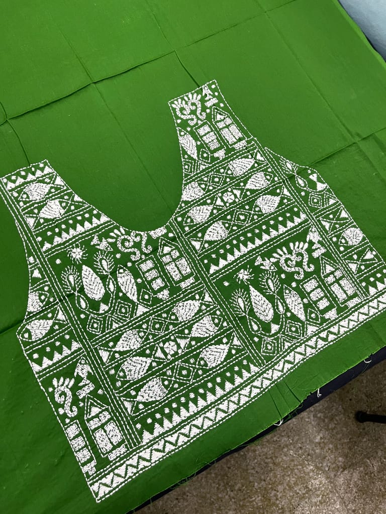 Kanthawork Blouse Piece is Purely Hand-Embroidered on the Back Neck and Sleeves Portion