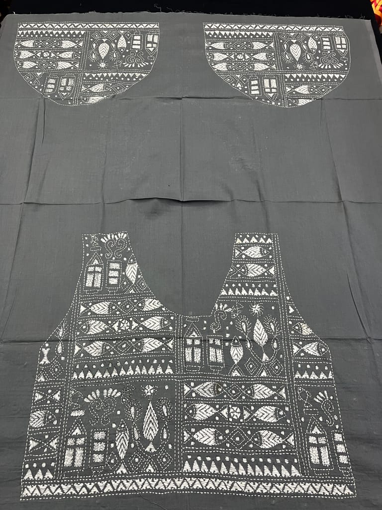 Kanthawork Blouse Piece is Purely Hand-Embroidered on the Back Neck and Sleeves Portion