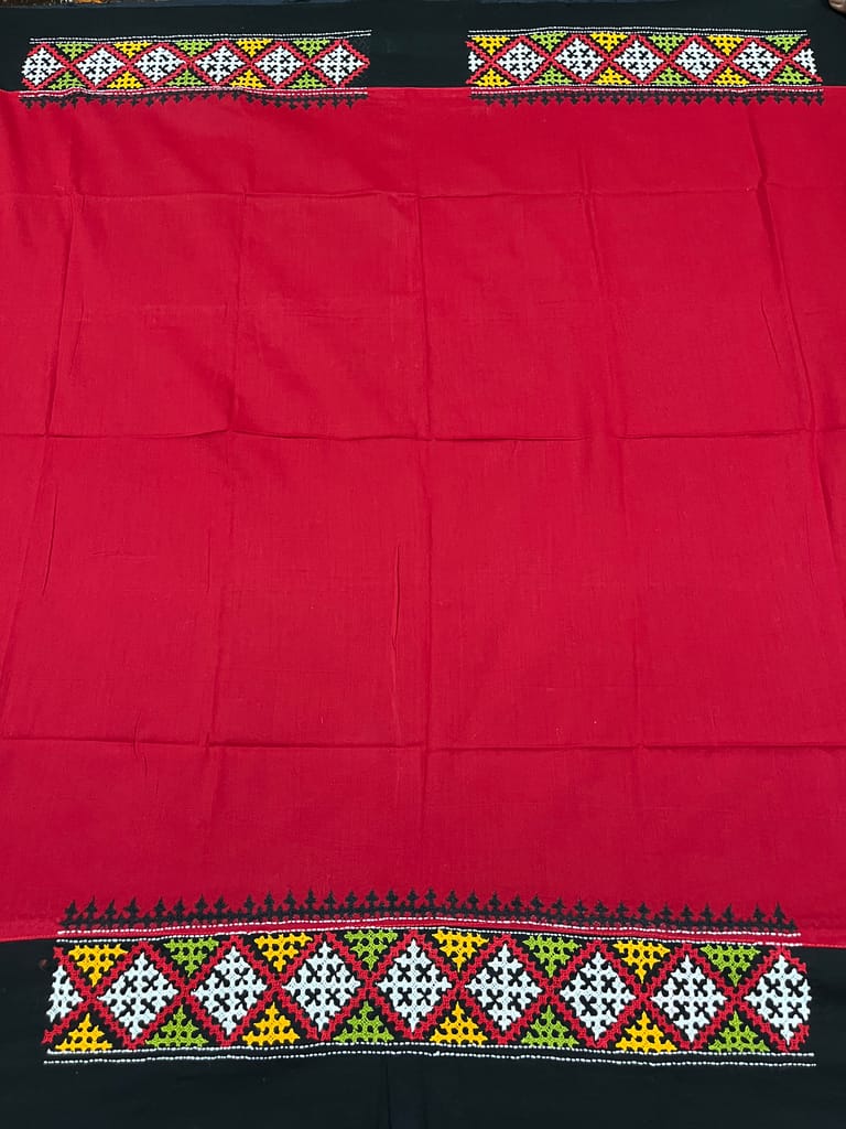 Kutchwork Blouse Piece is Purely Hand-Embroidered on the Back Neck and Sleeves Portion