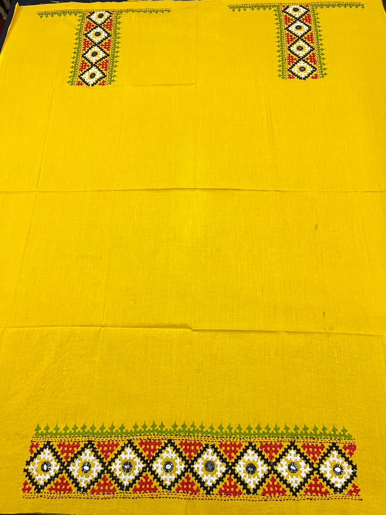 Kutchwork Blouse Piece is Purely Hand-Embroidered on the Back Neck and Sleeves Portion