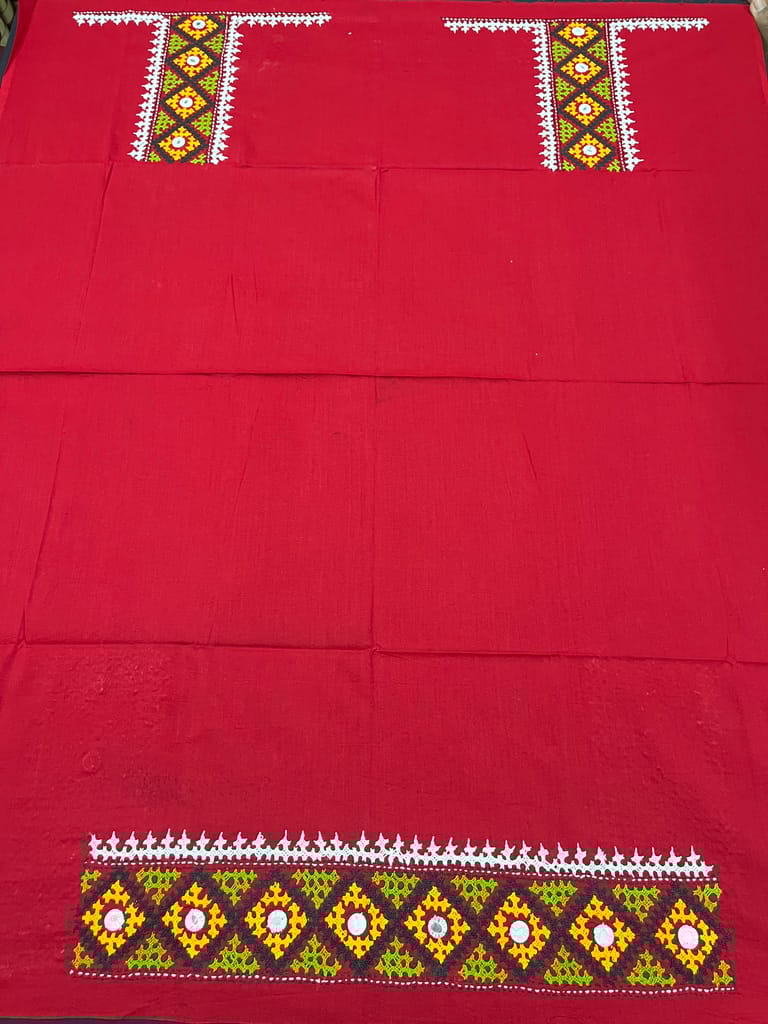 Kutchwork Blouse Piece is Purely Hand-Embroidered on the Back Neck and Sleeves Portion