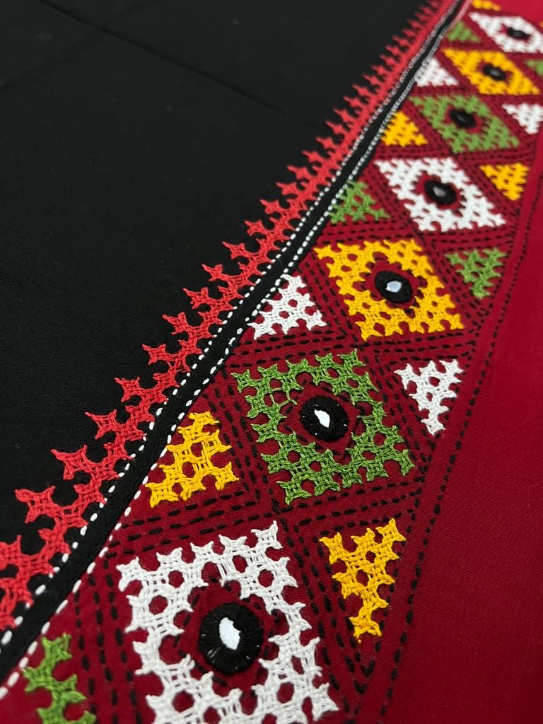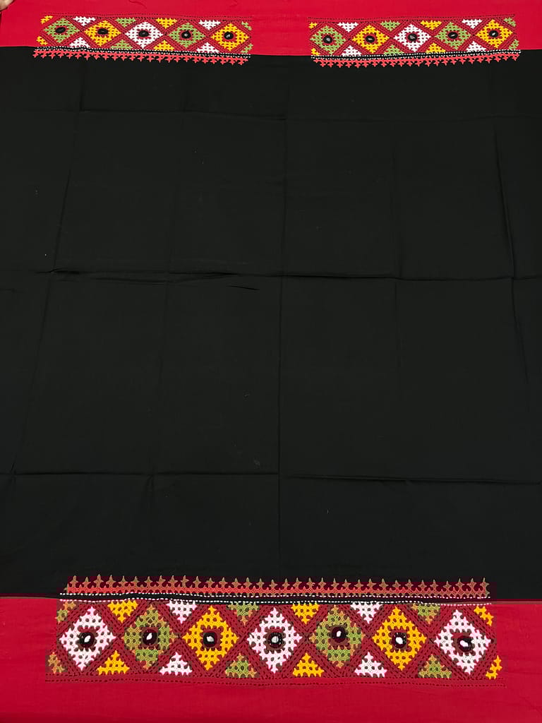 Kutchwork Blouse Piece is Purely Hand-Embroidered on the Back Neck and Sleeves Portion