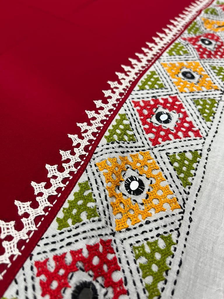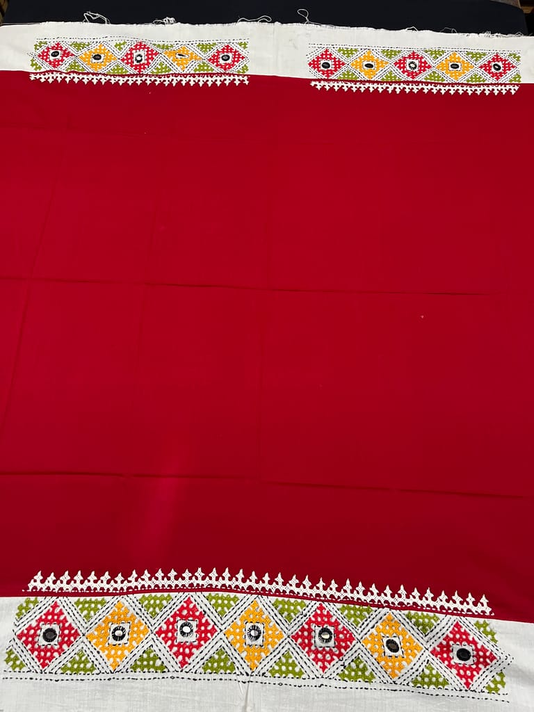 Kutchwork Blouse Piece is Purely Hand-Embroidered on the Back Neck and Sleeves Portion