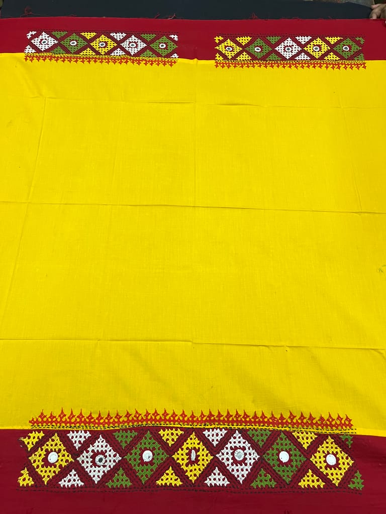 Kutchwork Blouse Piece is Purely Hand-Embroidered on the Back Neck and Sleeves Portion