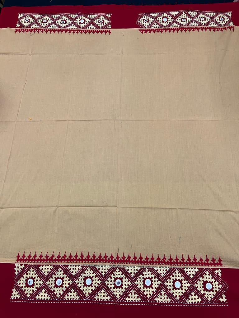 Kutchwork Blouse Piece is Purely Hand-Embroidered on the Back Neck and Sleeves Portion