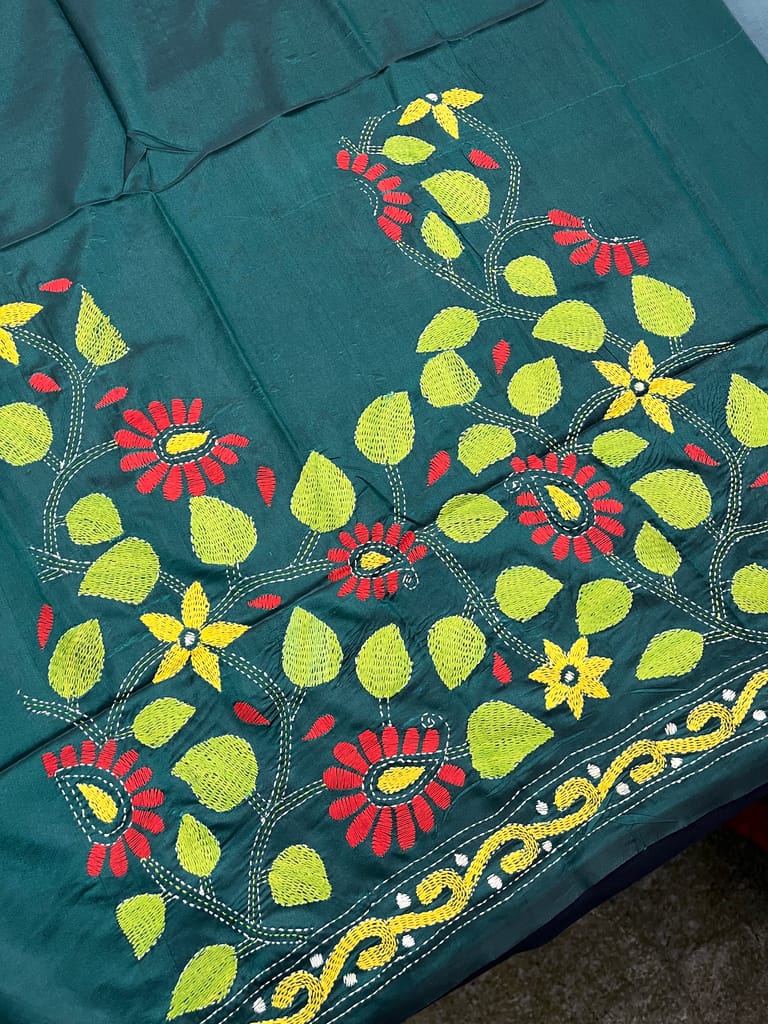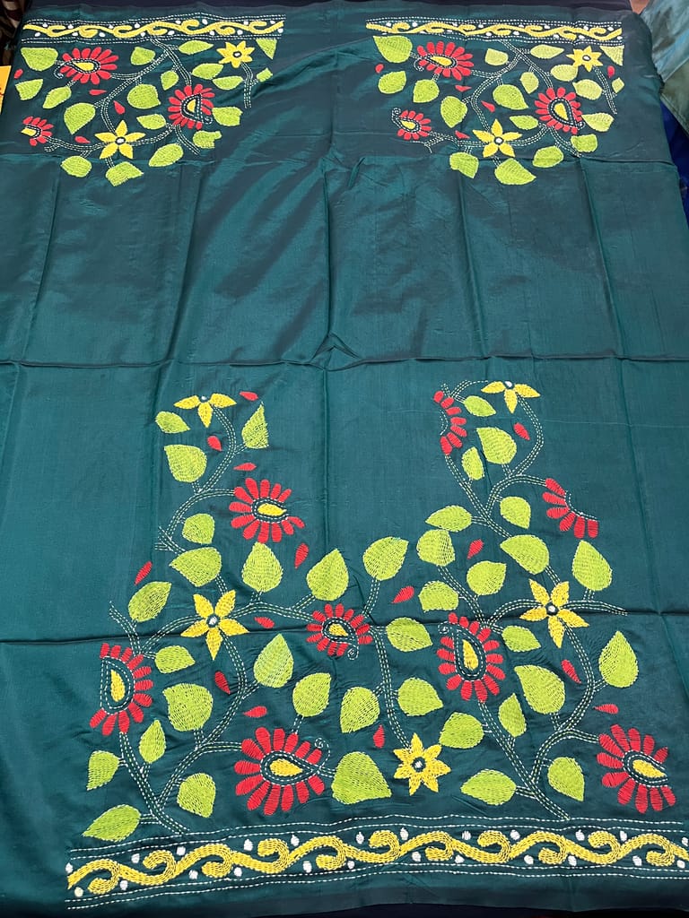Kutchwork Blouse Piece is Intricately Handembroidered on the Back Neck and Sleeves Portion