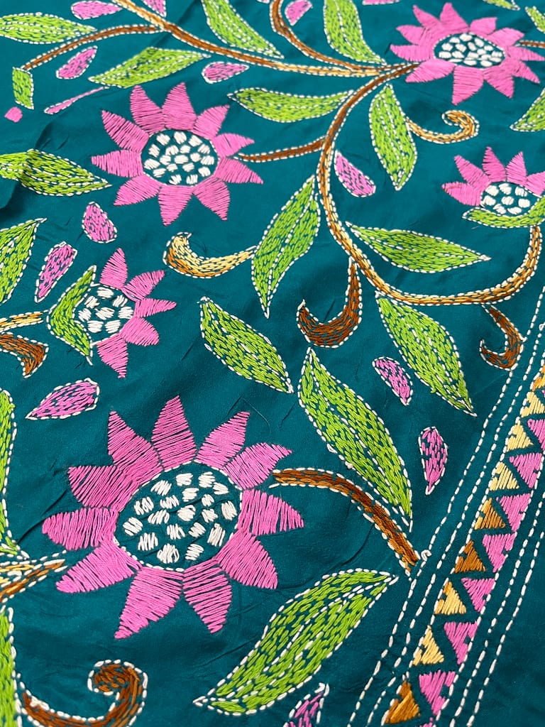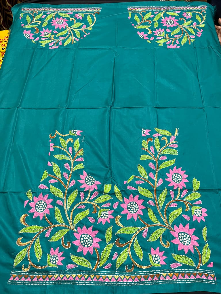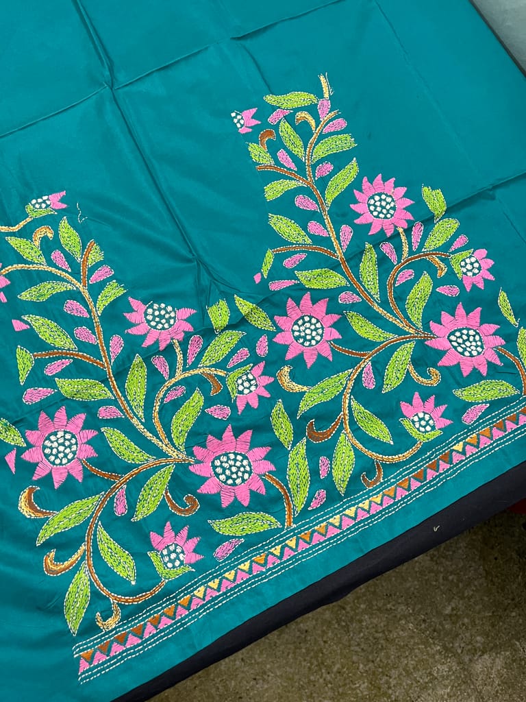 Kutchwork Blouse Piece is Intricately Handembroidered on the Back Neck and Sleeves Portion