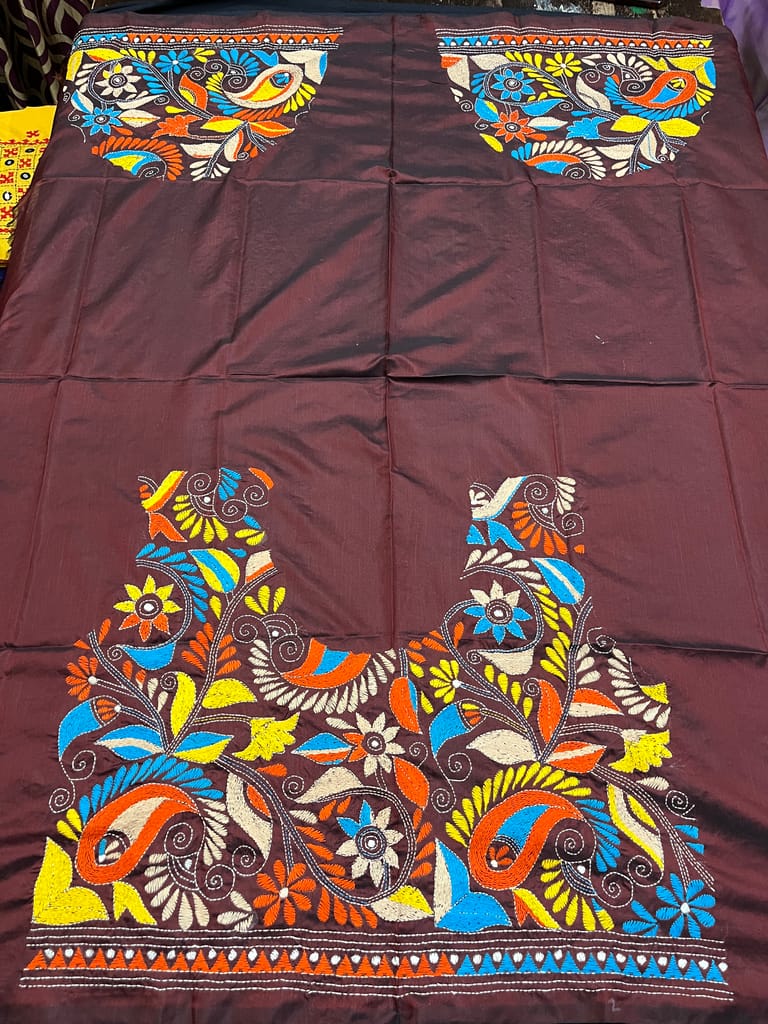 Kutchwork Blouse Piece is Intricately Handembroidered on the Back Neck and Sleeves Portion