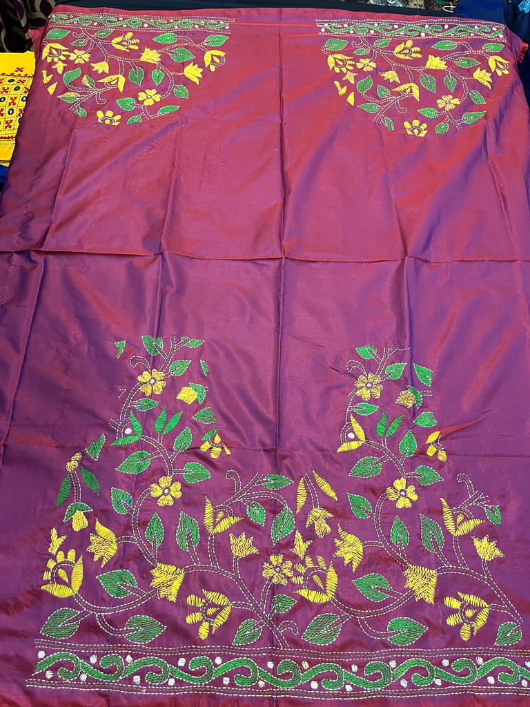 Kutchwork Blouse Piece is Intricately Handembroidered on the Back Neck and Sleeves Portion