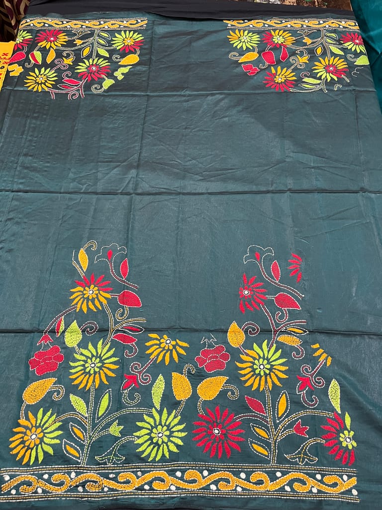 Kutchwork Blouse Piece is Intricately Handembroidered on the Back Neck and Sleeves Portion